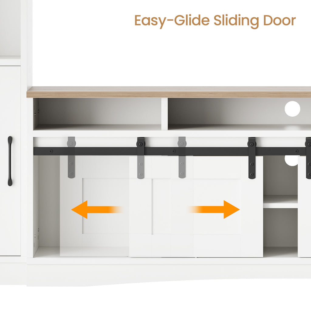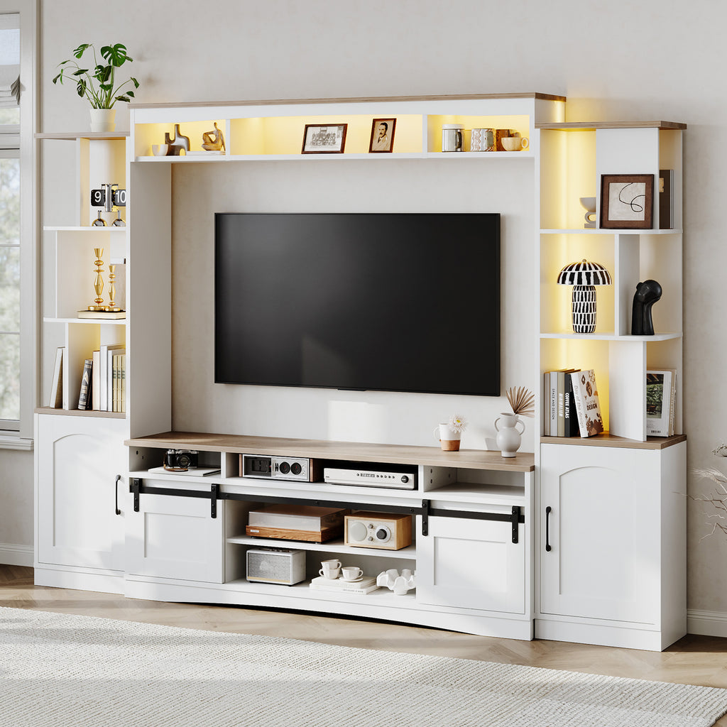 - All-in-One Design: This Wall Unit TV Stand combines a bookshelf, sideboard, display stand, and storage cabinet in one sleek design. The white finish fits seamlessly into any home decor, enhancing your space with modern style