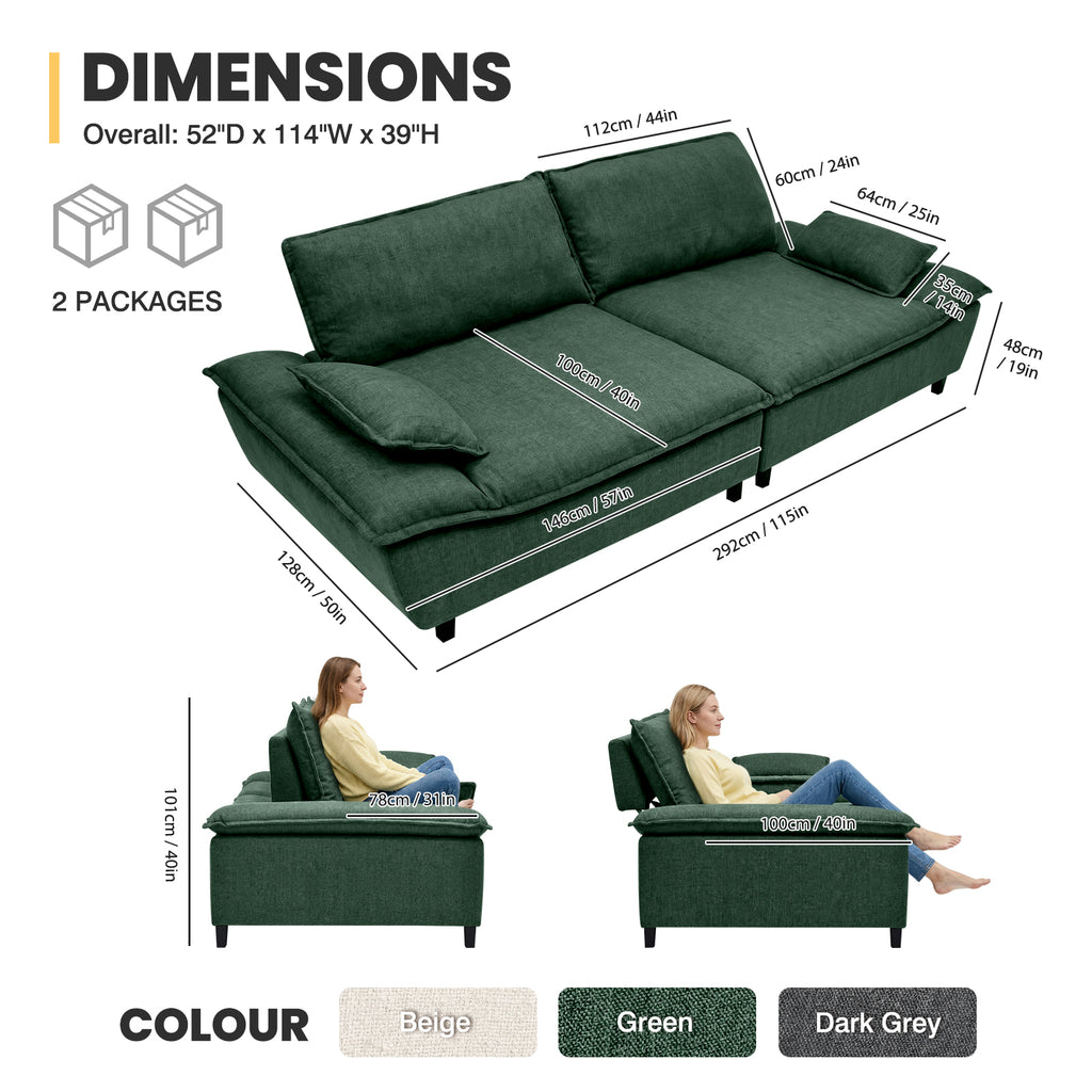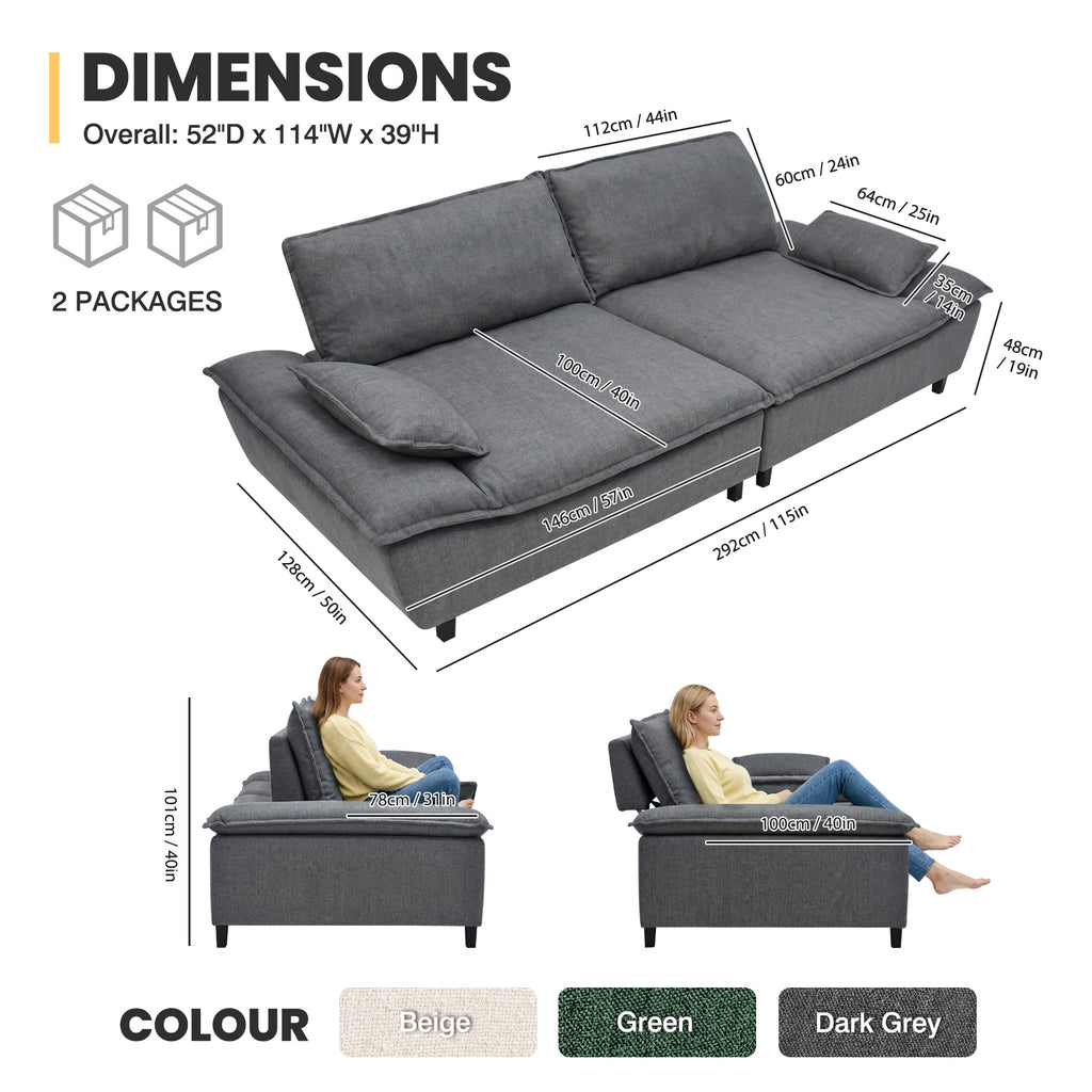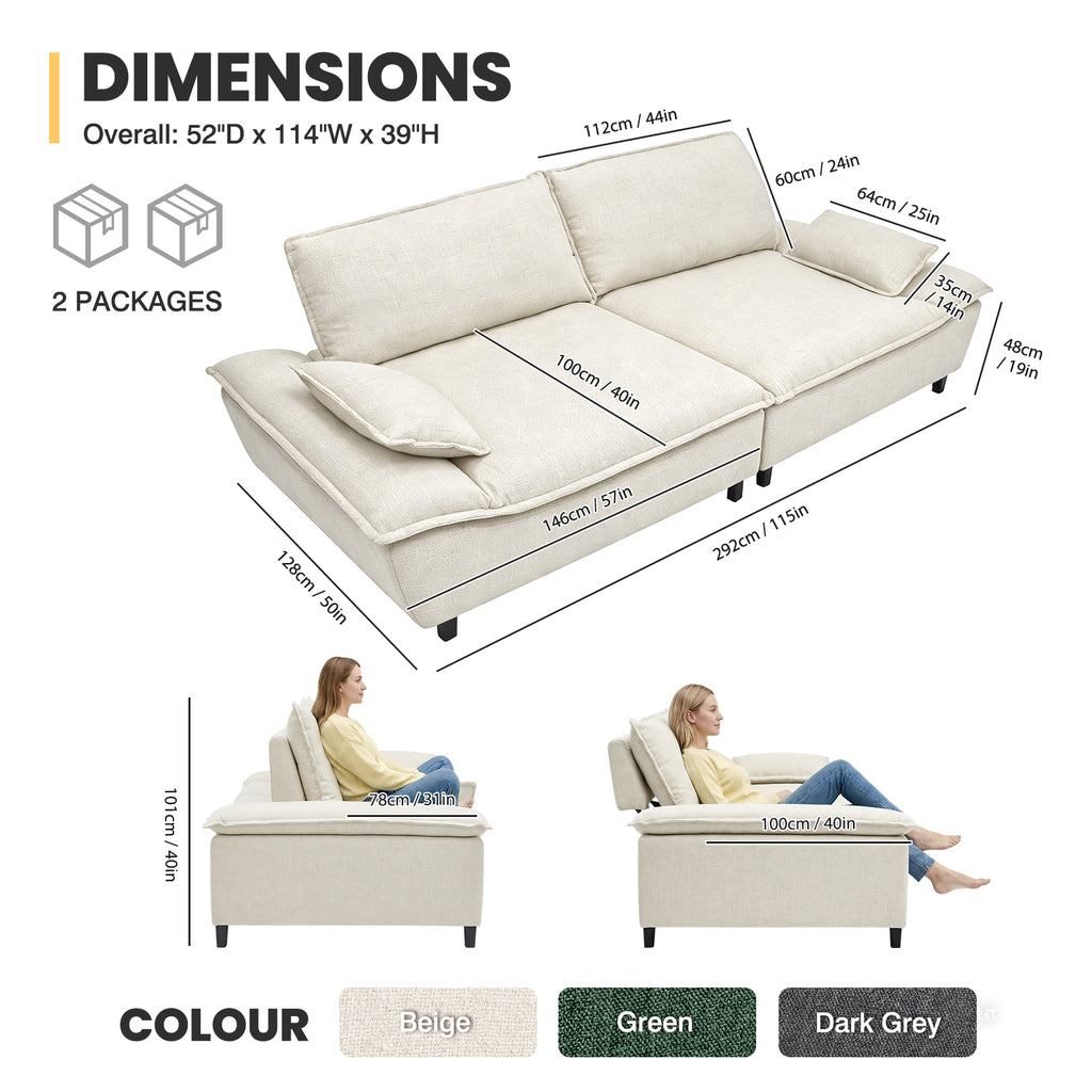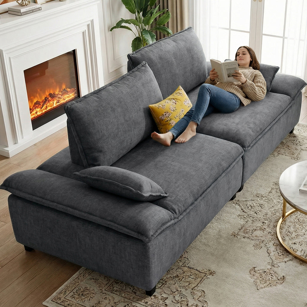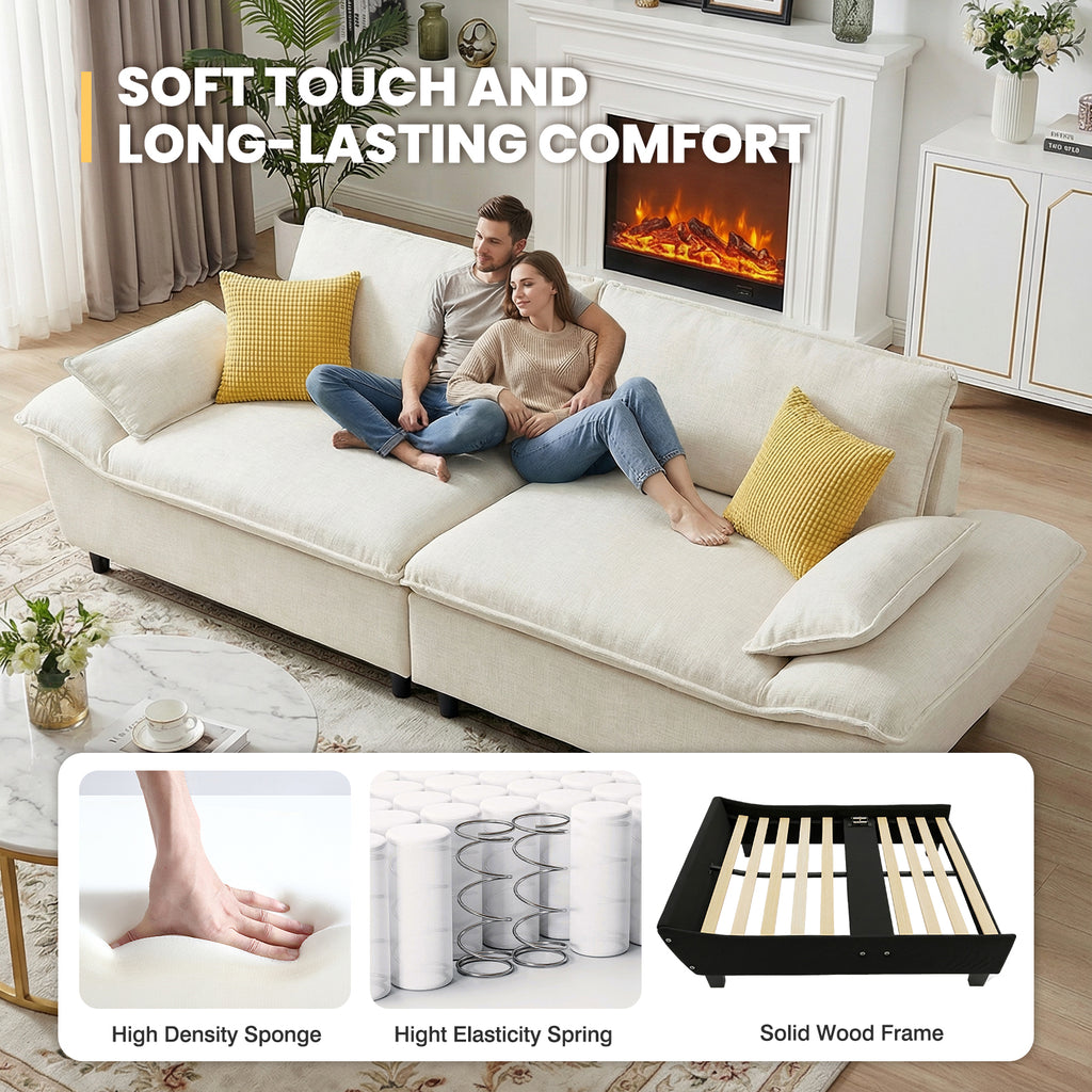 Durable & Sturdy Construction: Built with a solid wood frame and reinforced connectors, this sofa is stable and reliable for daily use. High-density foam cushions offer a soft yet supportive feel for long-lasting comfort