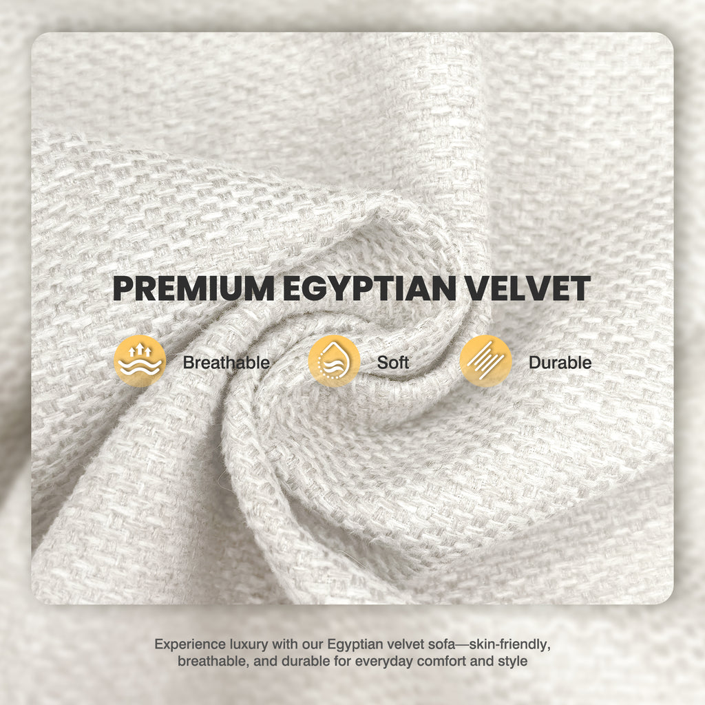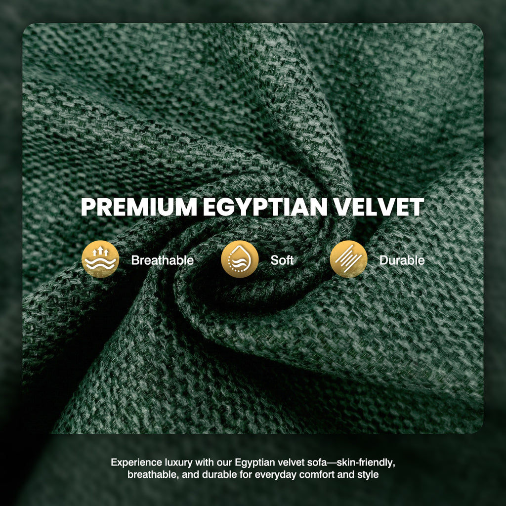 Comfort & Full Removable Covers: Crafted with soft, breathable, and skin-friendly premium Egyptian velvet, this sofa provides lasting comfort with high-resilience foam cushions. All parts—including cushions, backrests, and covers—are fully removable and washable for effortless cleaning
