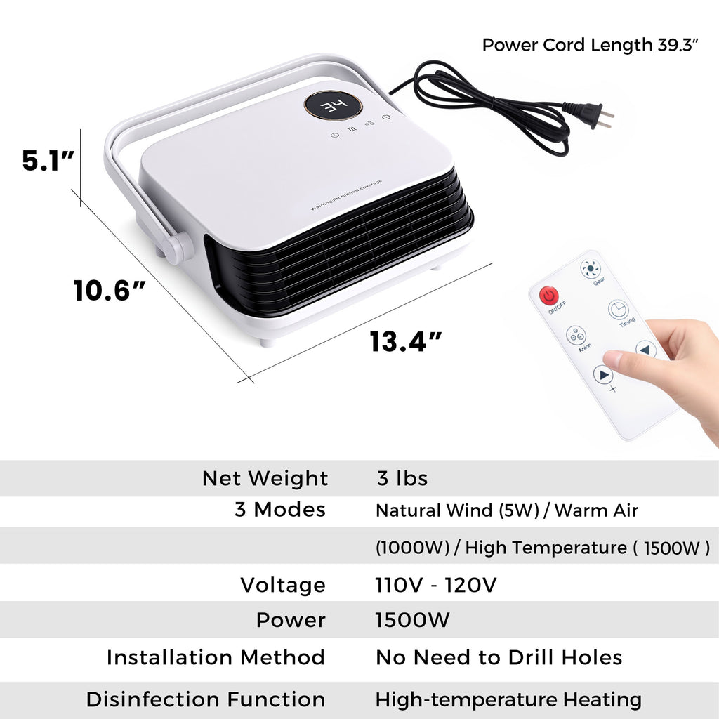 - 1500W PTC Heating: Powerful & Efficient Warmth - using ceramic heating technology to heat the air evenly and provide a warm and comfortable environment. It doesn't just blow hot air; it intelligently warms the room faster and maintains that perfect, consistent temperature much longer than old-fashioned heaters. Say goodbye to chilly mornings and cold snaps – this powerful yet efficient system ensures you feel comfortably warm without waiting around or worrying about energy spikes.