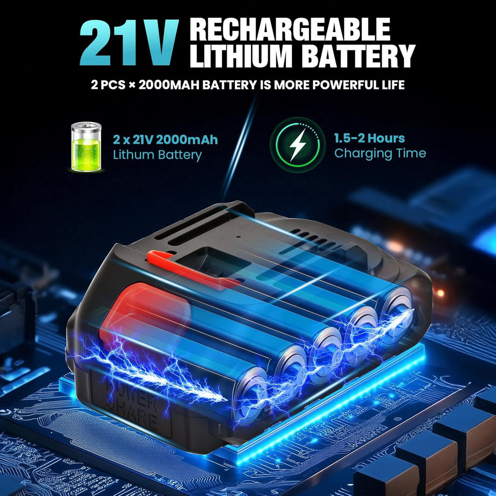 - Work Longer with Two 21V Batteries: Comes with two high-capacity lithium batteries that deliver consistent power and longer runtime—ideal for uninterrupted trimming sessions.