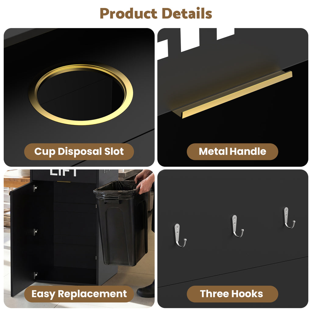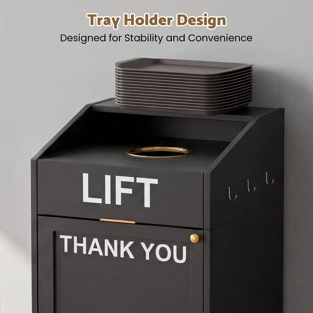 - Convenient Trash: Dedicated cup disposal opening, top tray holder, side hooks for extra storage, and a flip-up door design help minimize odors and keep your space organized