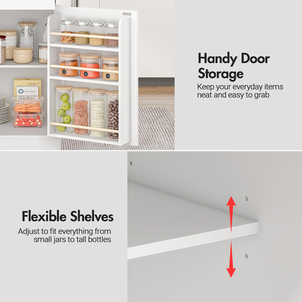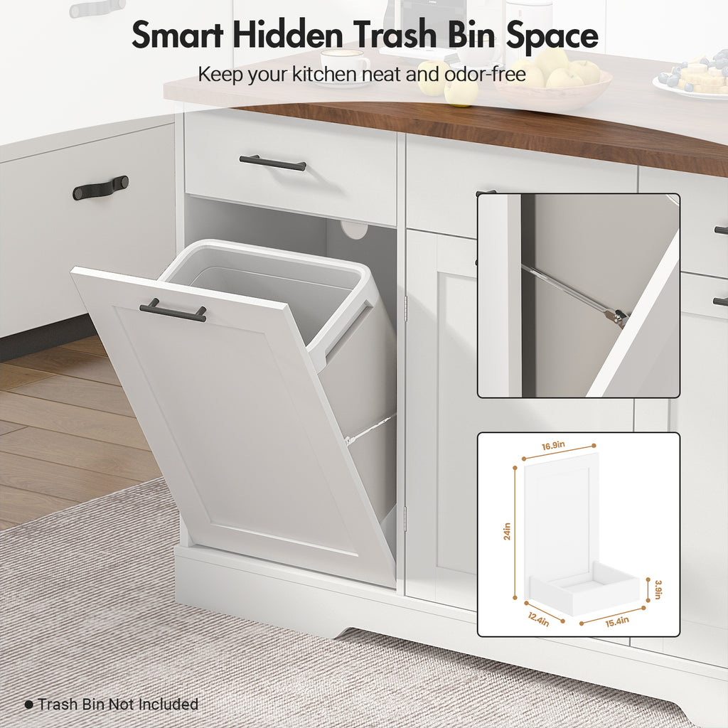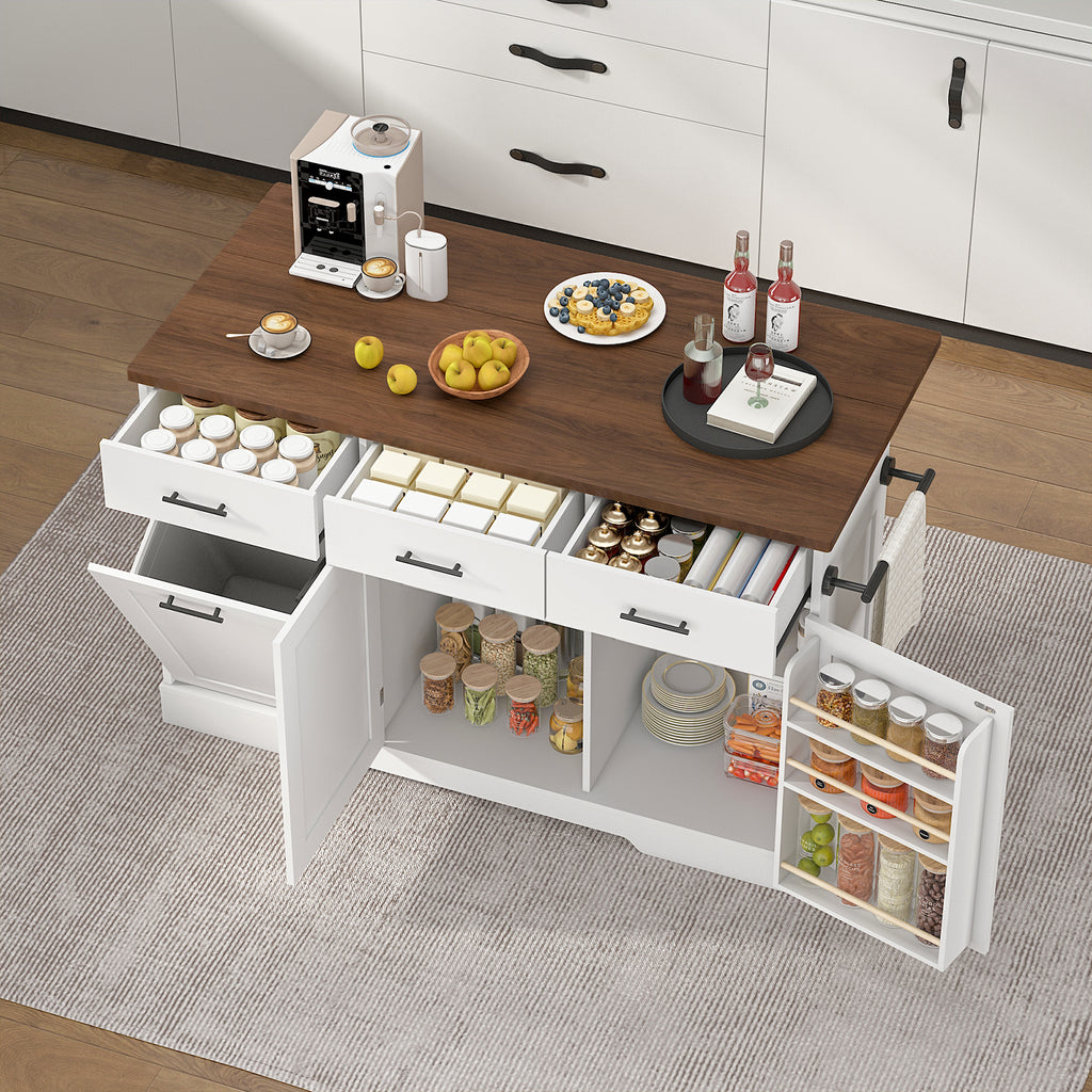 - Large & Organized Storage Capacity: Designed with adjustable shelves, 3 smooth drawers, a trash cabinet, and a 3-tier door rack, this island keeps your essentials neatly stored. Perfect for utensils, spices, cookware, or small appliances—all within easy reach.