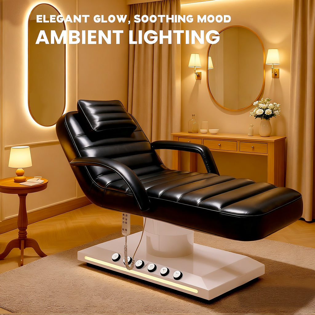 - Built-In LED Light for a Soothing Ambiance: Illuminate your space with the integrated LED light, providing a calm and inviting atmosphere while offering perfect visibility for all treatments. Ideal for facial care, tattooing, and other beauty services.