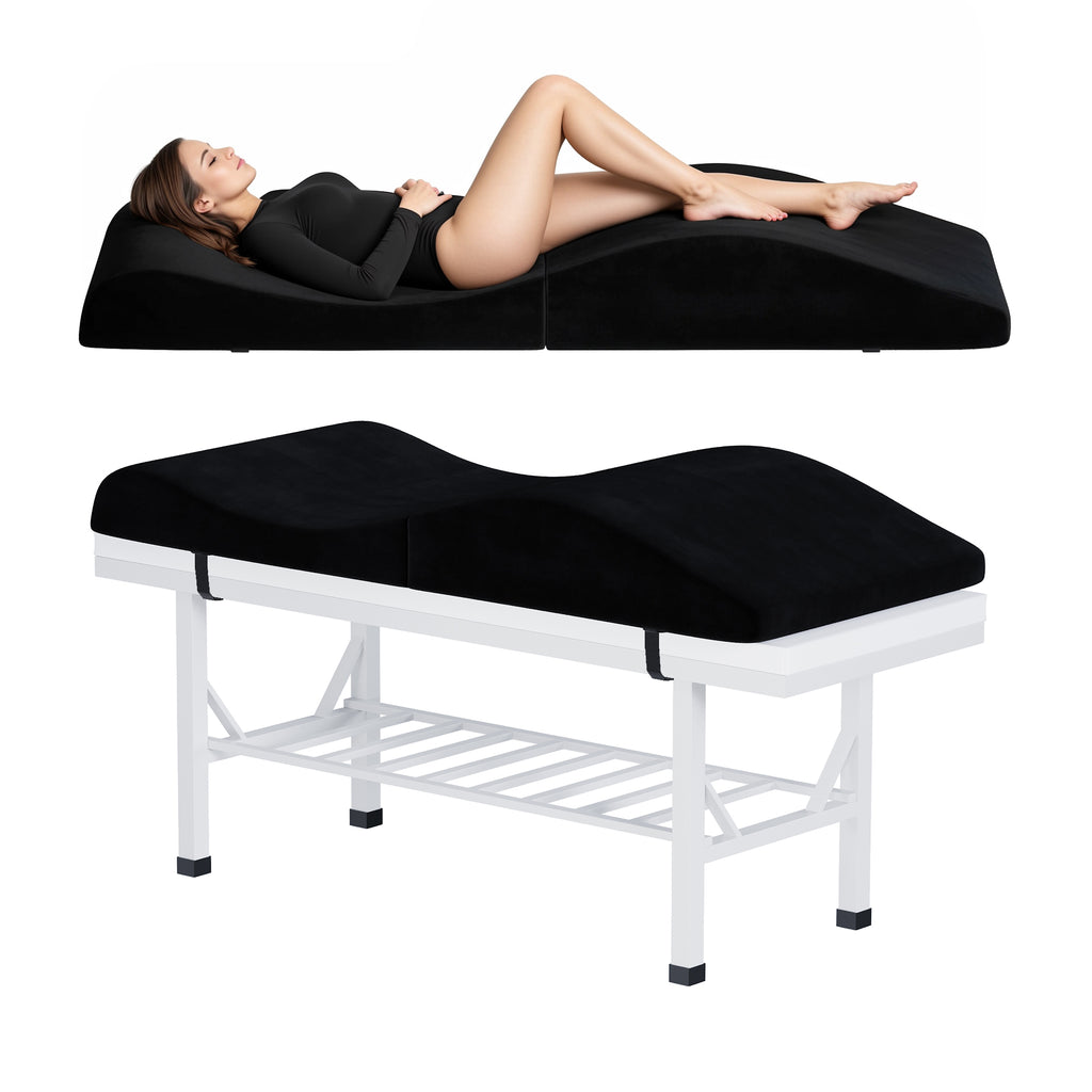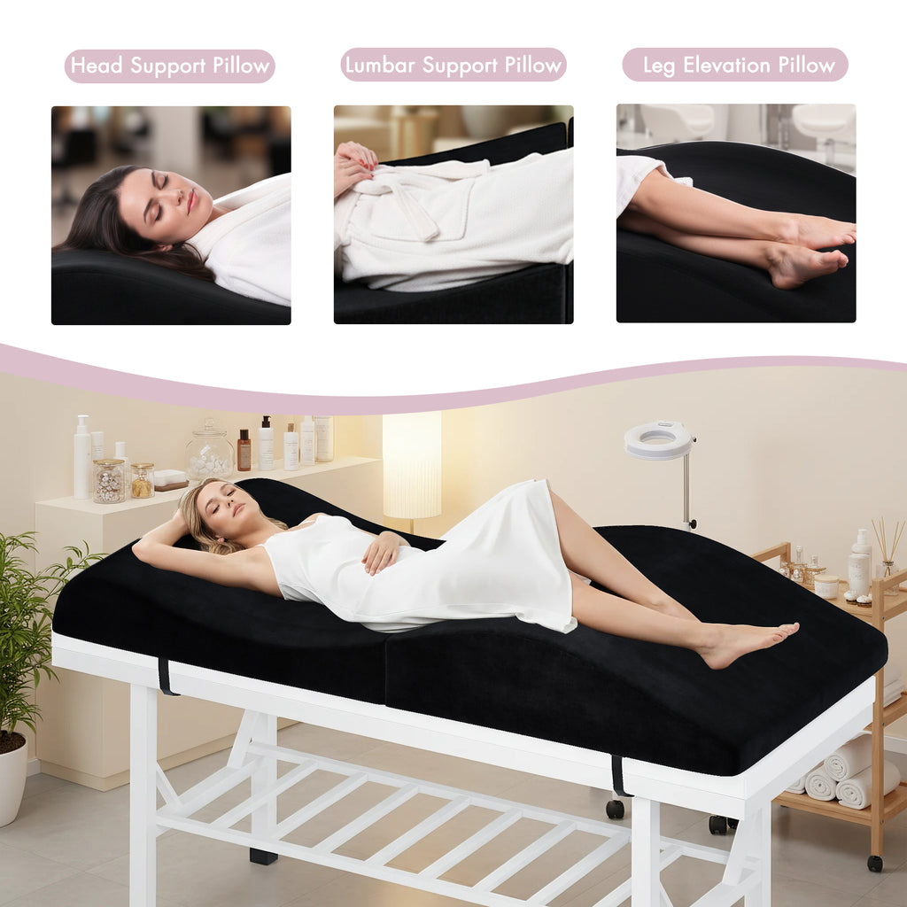 Ergonomic Curved Support – Transform Client Comfort: Stop letting flat beds cause back pain and discomfort! Our lash bed foam topper is specially designed with a curvy, ergonomic shape that gently elevates the legs and back, perfectly balancing hip and lumbar support. No more stacking pillows or makeshift cushions—this all-in-one massage table pad delivers unmatched relaxation while instantly upgrading your salon with a touch of elegance and professionalism.
