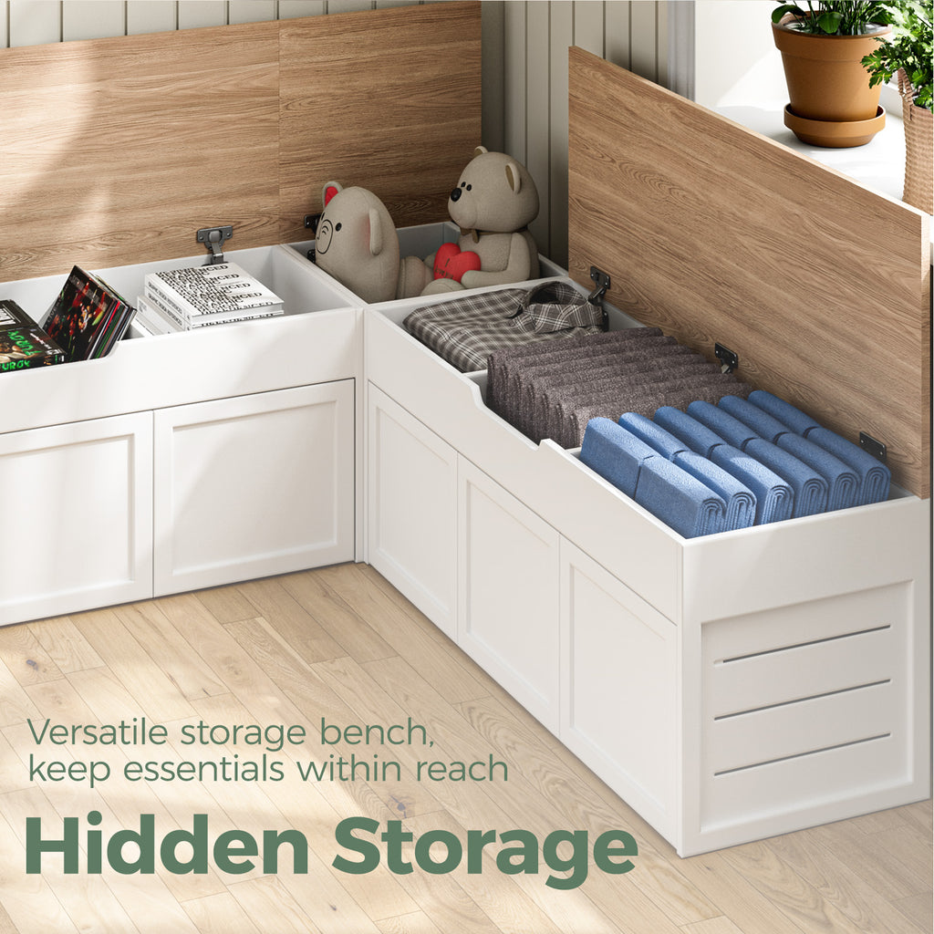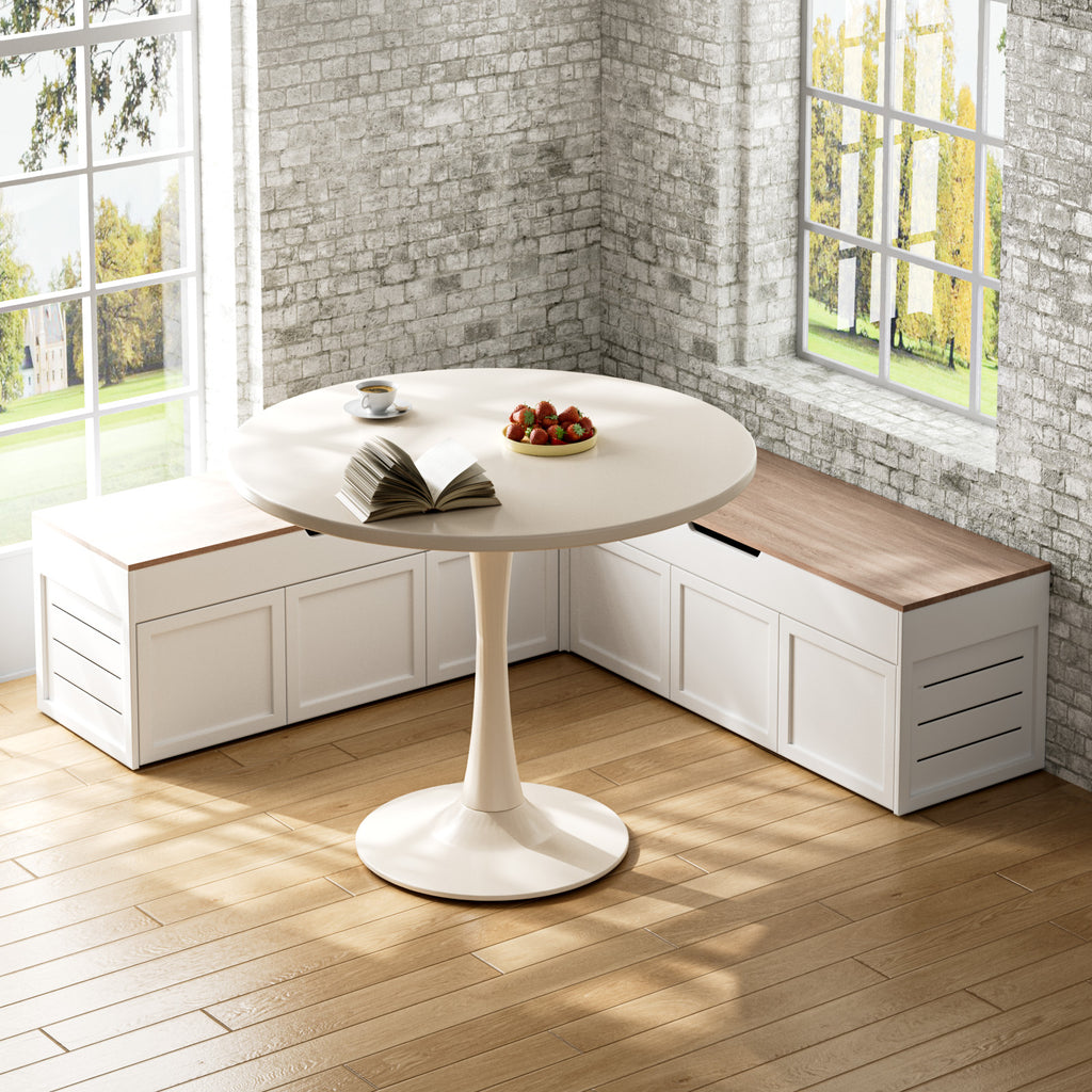 - Modern Minimalist Design: With a clean, handle-free look and push-to-open cabinet doors, this corner bench brings sleek style to dining nooks, kitchen corners, or entryways. Its space-conscious L-shaped form fits naturally into any modern home.