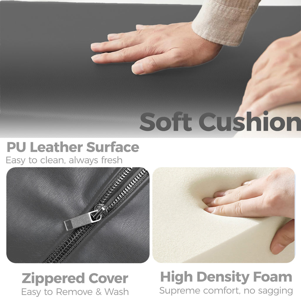 - Comfortable Cushion Options: Choose from three padded PU leather cushions: Fresh Green, Cool Grey, or Classic Black. High-density foam core offers firm support that won’t sag over time. Water-resistant and easy to wipe clean for everyday use.