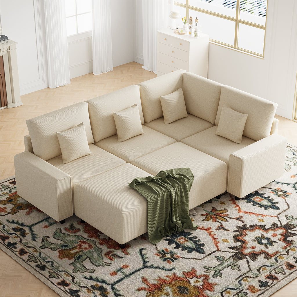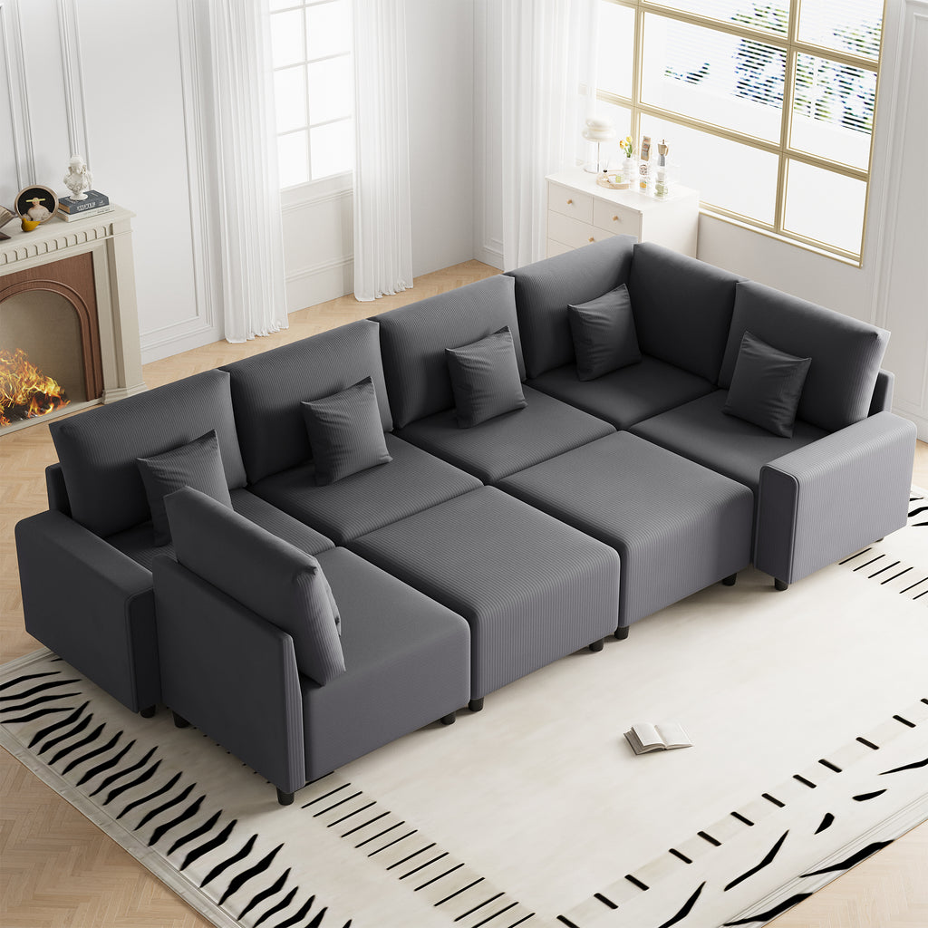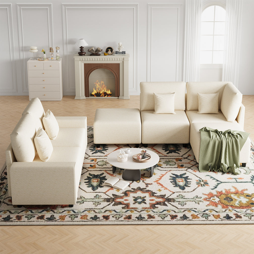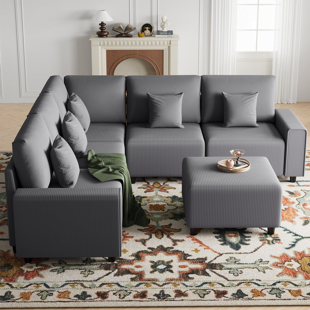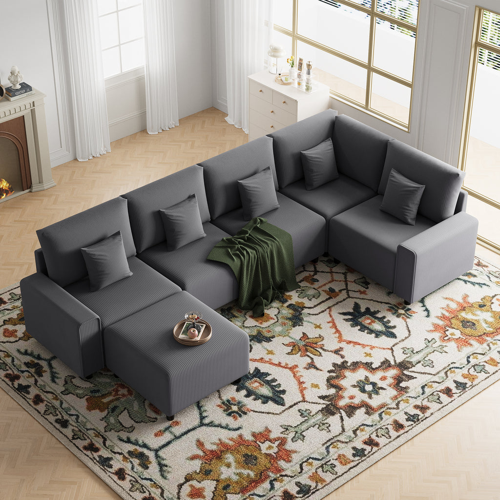 Premium Corduroy & Removable Covers: Crafted from luxurious corduroy, this modular sectional delivers a rich, velvety texture that’s soft, durable, and cozy. All seat covers are removable and machine-washable, making maintenance effortless—perfect for families with kids or pets