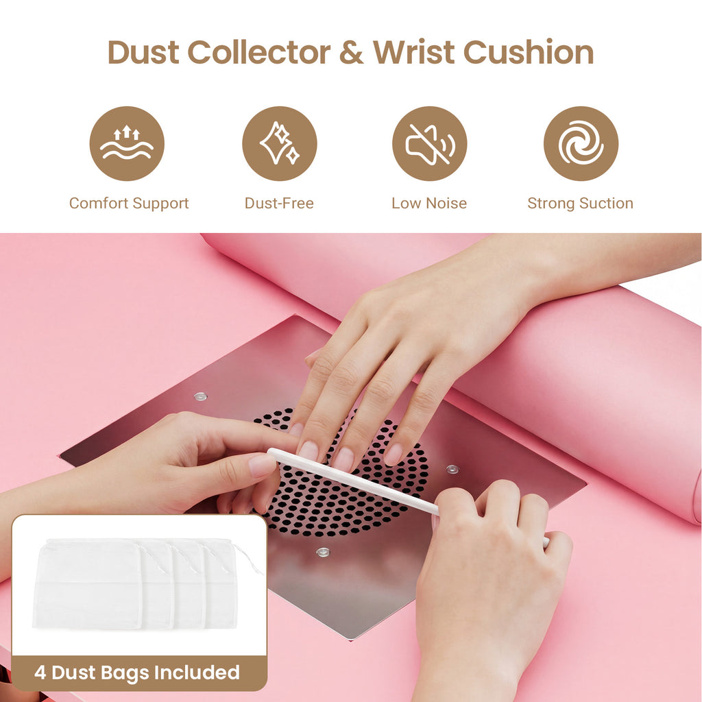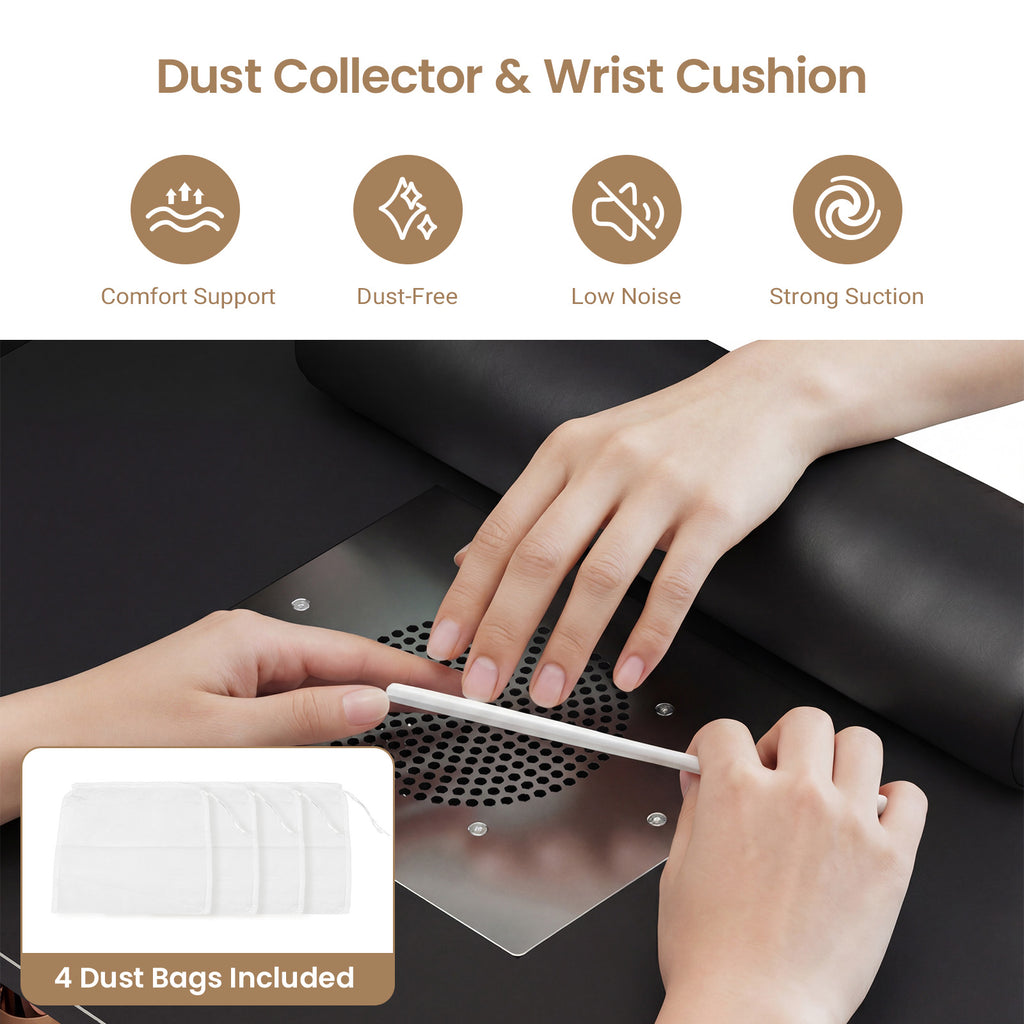 Powerful Dust Collector: Advwin manicure table features a 60 W dust collector with four reusable dust bags, efficiently capturing nail debris and fine particles to maintain a cleaner workspace for technicians and clients.