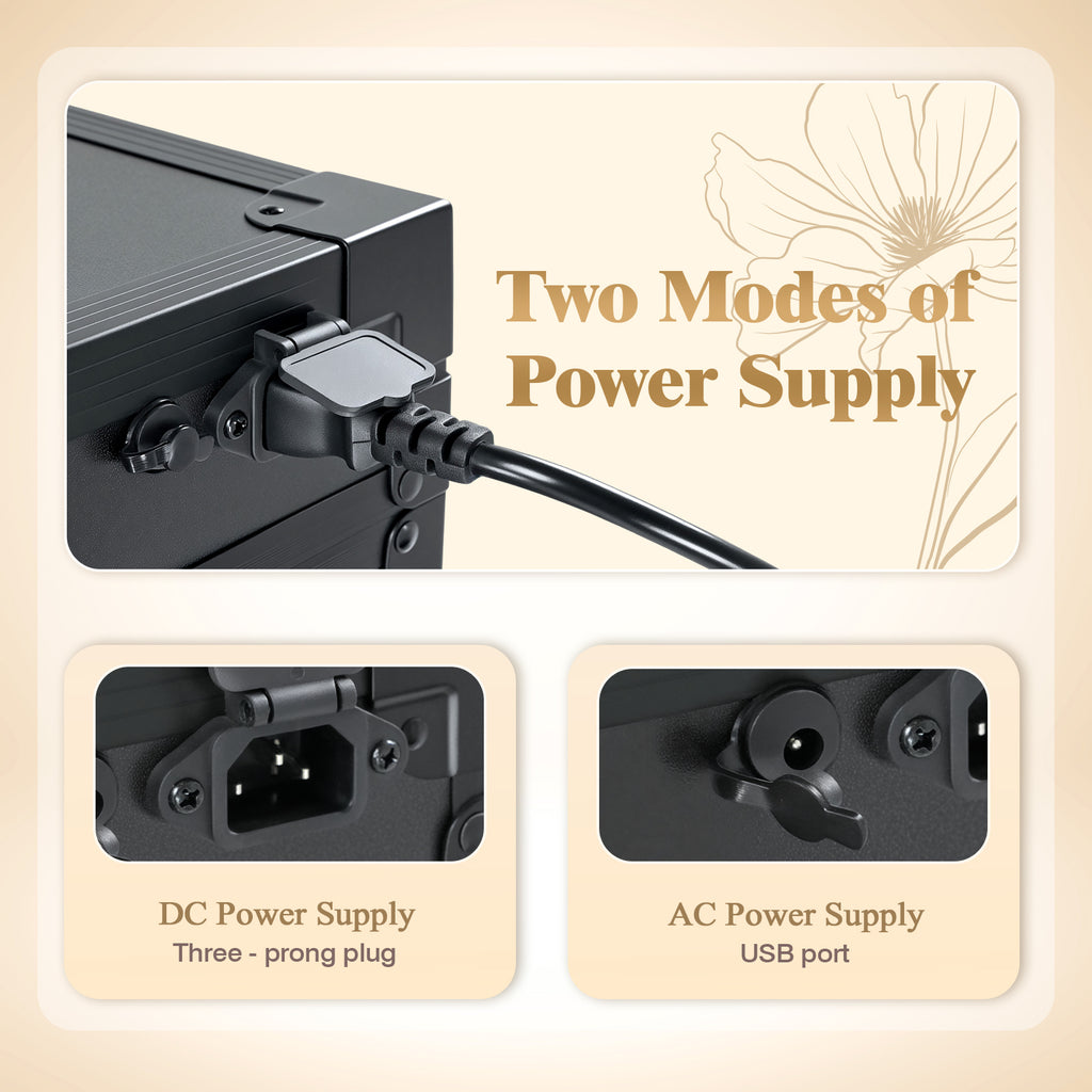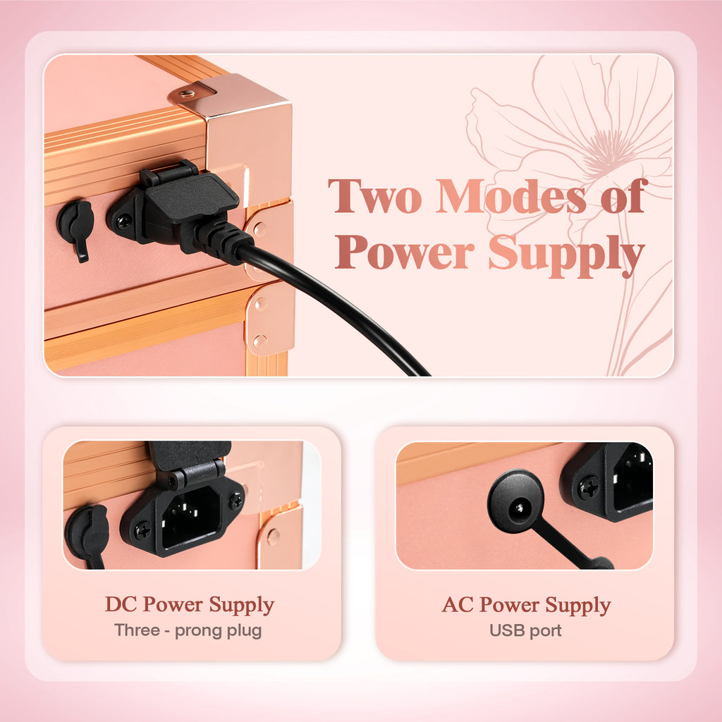 - Adjustable LED Mirror: The lid includes a high-definition explosion-proof mirror with three adjustable light modes to match any setting. The manicure table nail station comes with both a standard plug and USB option, making it convenient for both indoor and outdoor use.