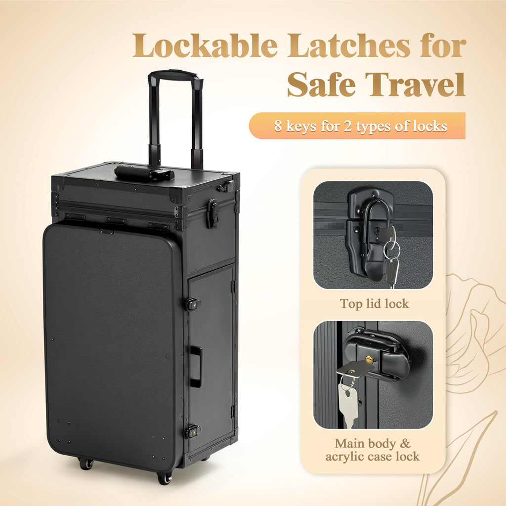 - Durable & Easy to Move: Built with a reinforced aluminum frame and metal-protected corners, this mobile nail tech table is designed for long-term use. It features four smooth-rolling wheels, including two lockable swivel casters for added stability. Lockable doors and a secure lid keep your tools safe, making it a reliable nail table for nail tech use.