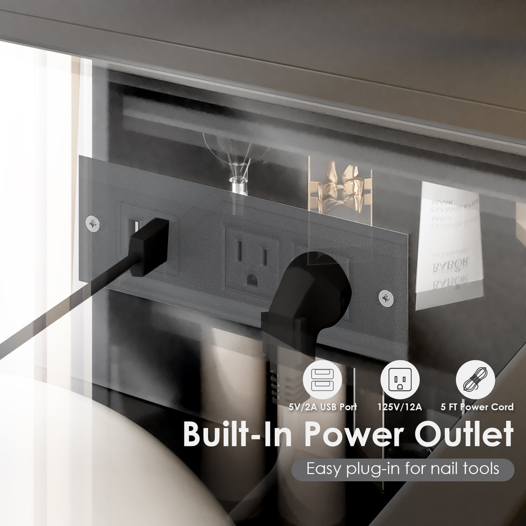 Plug In & Get to Work: Stay powered with a built-in nail table charging station featuring 2 USB ports and 2 standard 125V outlets. Perfect for powering nail lamps, drills, phone chargers, and more—keep your nail desk clutter-free and salon-ready.