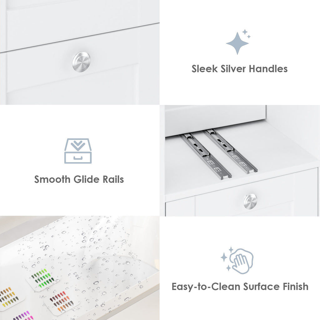 Ample Storage with Adjustable Layout: Offers a spacious cabinet with adjustable shelf, 4 drawers, a dual-access pull-out tray, and multi-tier racks. Includes flexible plastic dividers for customized storage—perfect for nail essentials such as polish, décor, tools, and tips.