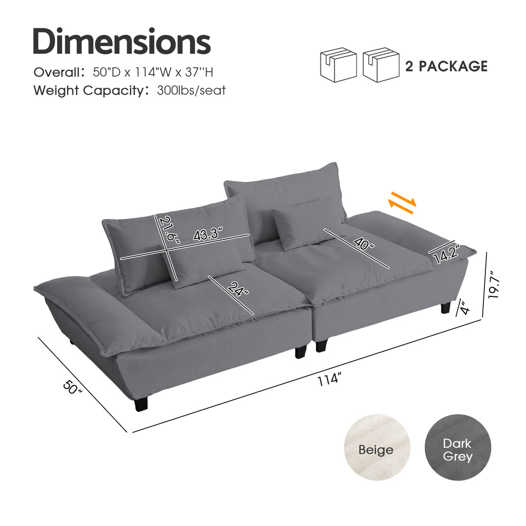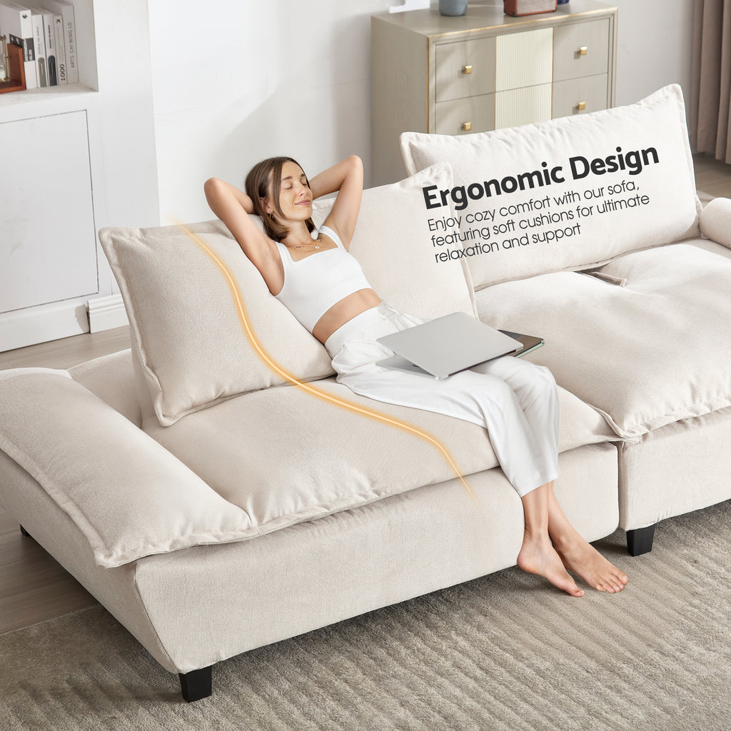 - Sturdy Frame & Ultra-Soft Cloud Cushions: Built with a reinforced wooden frame and metal connectors, each seat supports up to 300 lbs. High-density foam and fiber-filled cushions provide a plush, cloud-like seating experience with a deep 23" seat.