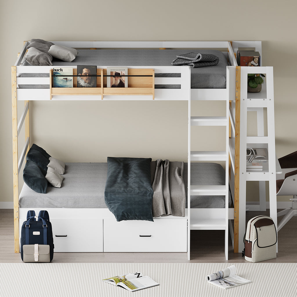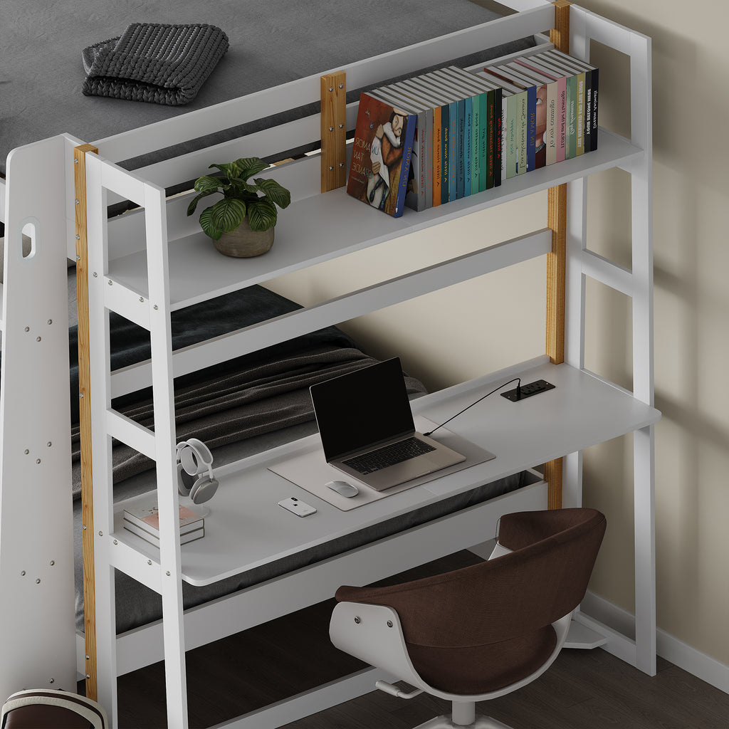 - Convertible Side Table: This versatile bunk bed features a side table that can be swapped to either side, providing flexible placement. The side table includes built-in outlets and an upper bookshelf, offering convenient power access and extra storage for books or small items
