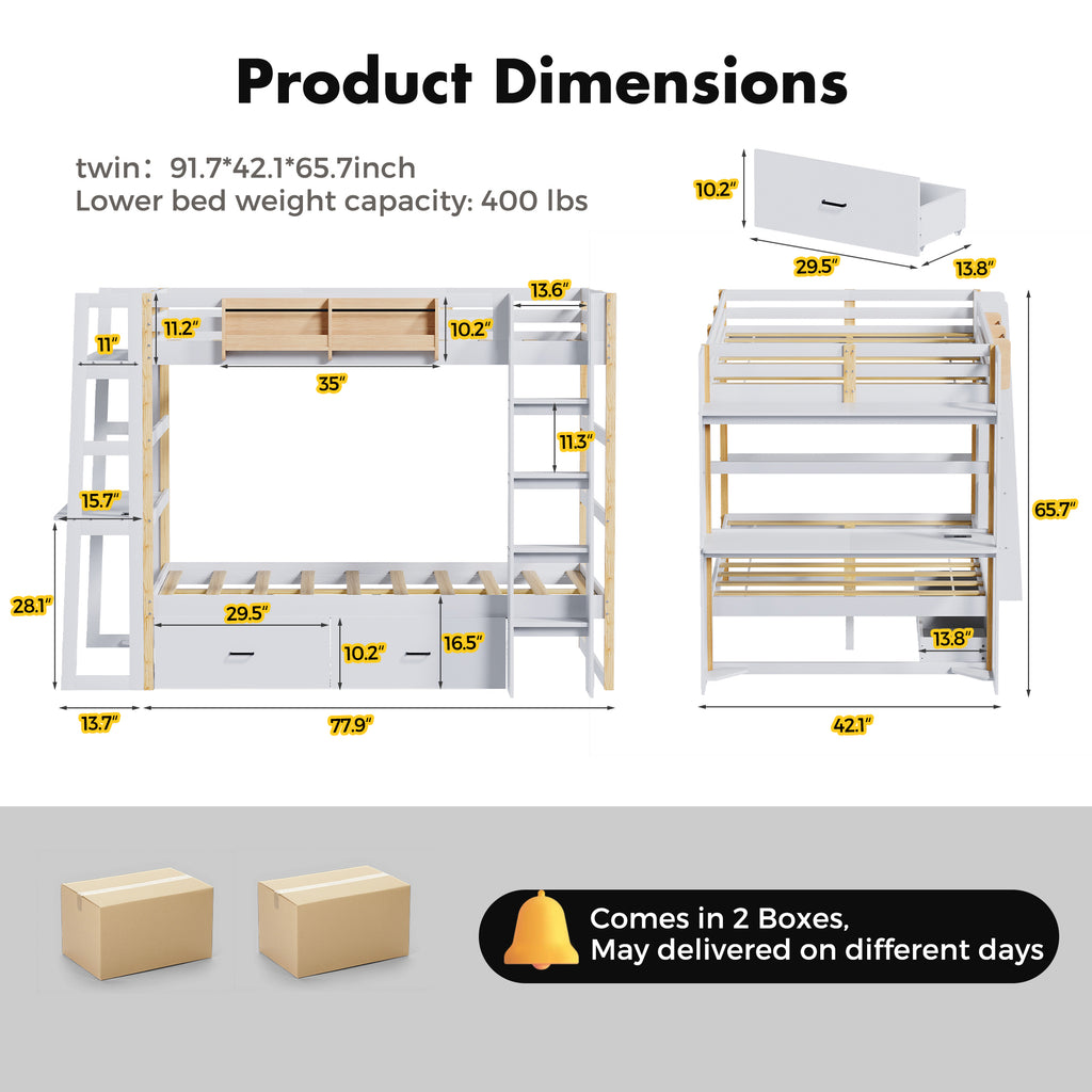 NOTE: This loft bed arrives in 2 separate boxes, which may come on different days. In case of any defects or transit-related damages, please reach out to us promptly, and we'll ensure a satisfactory resolution.