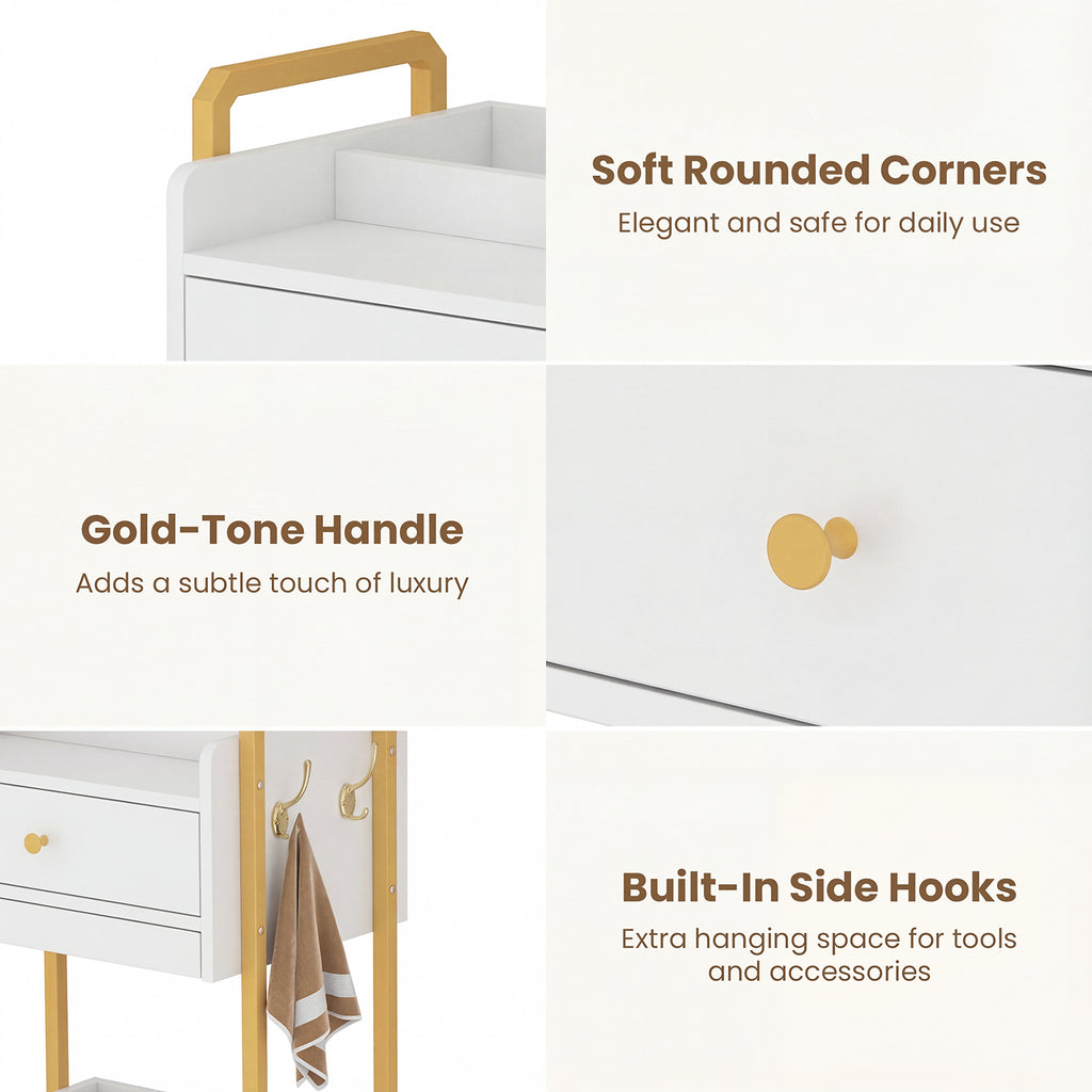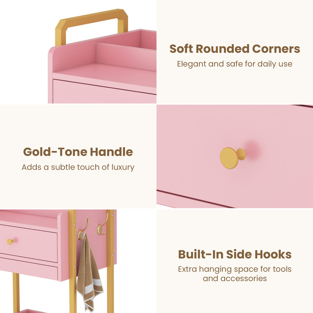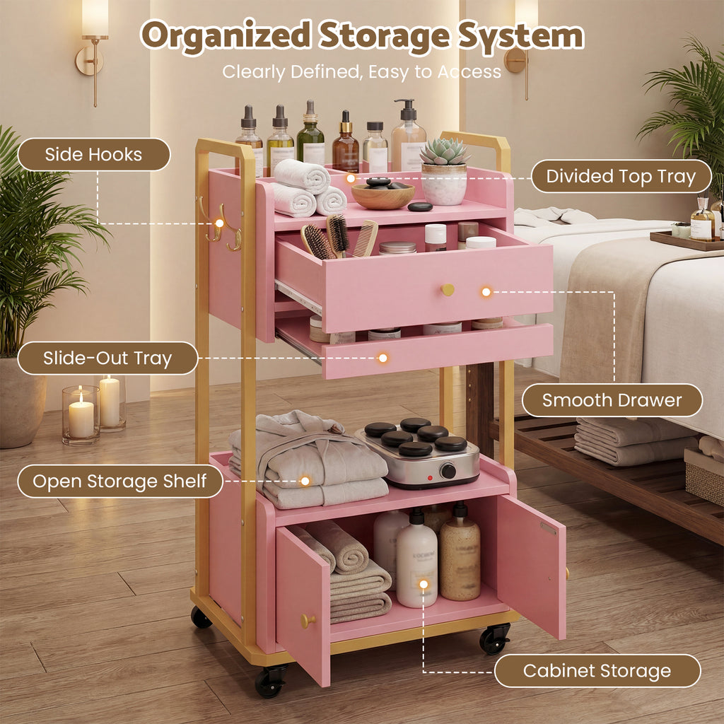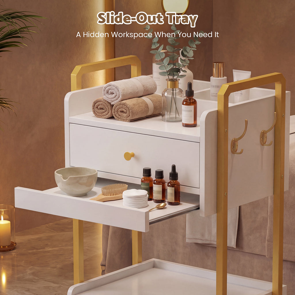 - Designed for Professional Spa Environments: A practical rolling workstation for estheticians, facial rooms, and beauty salons. Balances accessibility, organization, and mobility to meet the demands of professional spa operations.