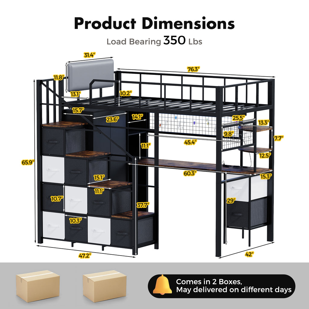 NOTE: This loft bed arrives in 2 separate boxes, which may come on different days. In case of any defects or transit-related damages, please reach out to us promptly, and we'll ensure a satisfactory resolution.