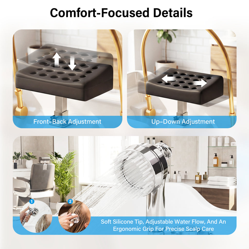 Smart Heat Control with Waterfall Circulation: Enjoy steady warm-water rinsing with a soothing waterfall flow and multifunctional sprayer. The smart pump and digital controls let you adjust heat, pressure, and spray modes for a more comfortable, spa-level treatment.