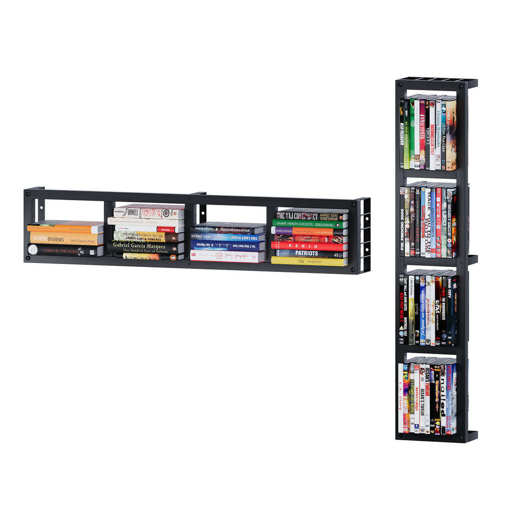 - Multi-Purpose Storage: Measuring 34 inches with 4 compartments, this shelf stores up to 60 CDs or 40 DVDs and can also function as a game holder or display shelf