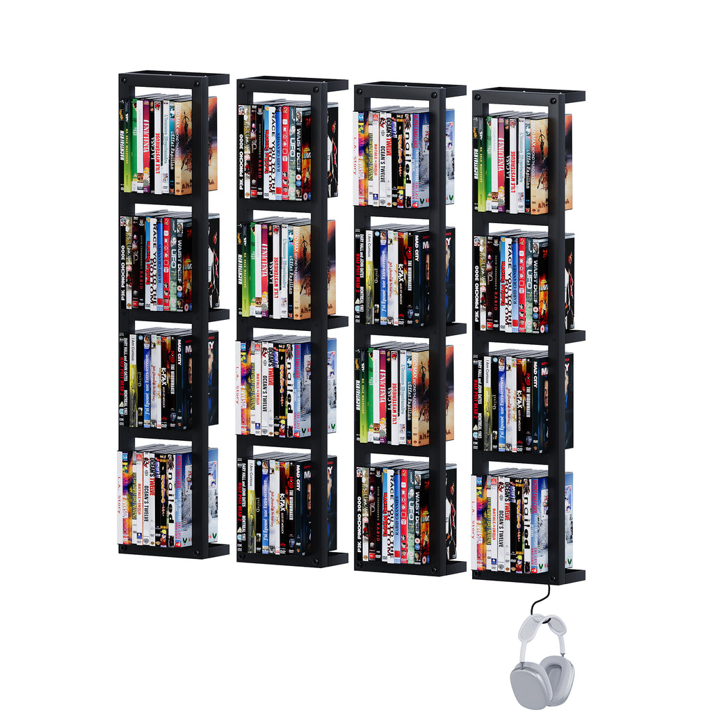 - Triple Support Design: Features three sturdy supports, two of which can be used for storage or equipped with S-hooks to hang headphones, controllers, or cables. This design makes wall mounted CD rack more stable, durable, and capable of holding heavier loads safely