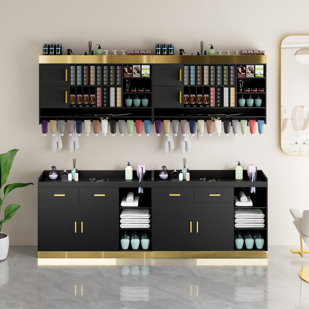 - Efficient Salon Furniture: Wall-mounted salon station with 130 L storage capacity; combines display rack and storage cabinet to keep all hair dye tubes and tools neatly organized while saving valuable counter space
